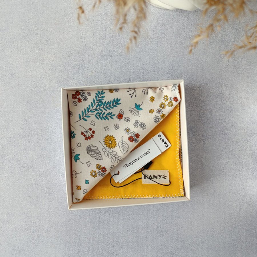 Стильний жіночий носовичок — це аксесуар, який допомагає в будь-якій ситуації. Наша модель виготовлена із натуральної тканини, що додає комфорту і забезпечує довговічність виробу. Двосторонній дизайн дозволяє використовувати різні сторони залежно від обраного стилю. Це робить носовичок універсальним вибором для жінок будь-якого віку. Цей носовичок не тільки стане вашим улюбленим аксесуаром, а й чудовим подарунком для особливої людини. Завдяки якісним матеріалам і неперевершеному дизайну він обов’язково сподобається навіть найвибагливішим жінкам. Пошитий з 100% натуральної дуже м`якої на дотик бавовни.