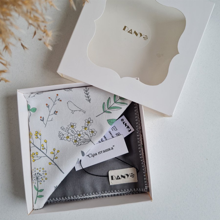 Жіночий носовичок “Сіра Пташка” — це не просто аксесуар, а ваш незамінний супутник на кожен день. Його двосторонній дизайн з 100% натуральної бавовни робить носовичок надзвичайно м’яким і приємним на дотик. З розміром 24х24 см, він ідеально підходить для верхнього одягу чи сумочки. Але якщо ви шукаєте щось компактніше для джинсової кишені або маленького клатча, розмір 18х18 см стане вашим ідеальним вибором. Цей носовичок знайде своє місце у найрізноманітніших ситуаціях. Наприклад, коли ви затримуєтеся на прогулянці прохолодного дня, “Сіра Пташка” завжди буде під рукою, щоб зігріти руки або зберегти їх сухими. Або ж під час робочого дня, коли потрібно швидко…